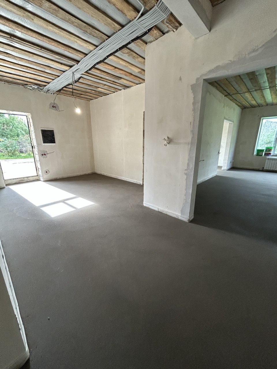 Стены оштукатурены машинным способом, выполнены откосы, залита стяжка пола — дом полностью подготовлен к чистовой отделке.